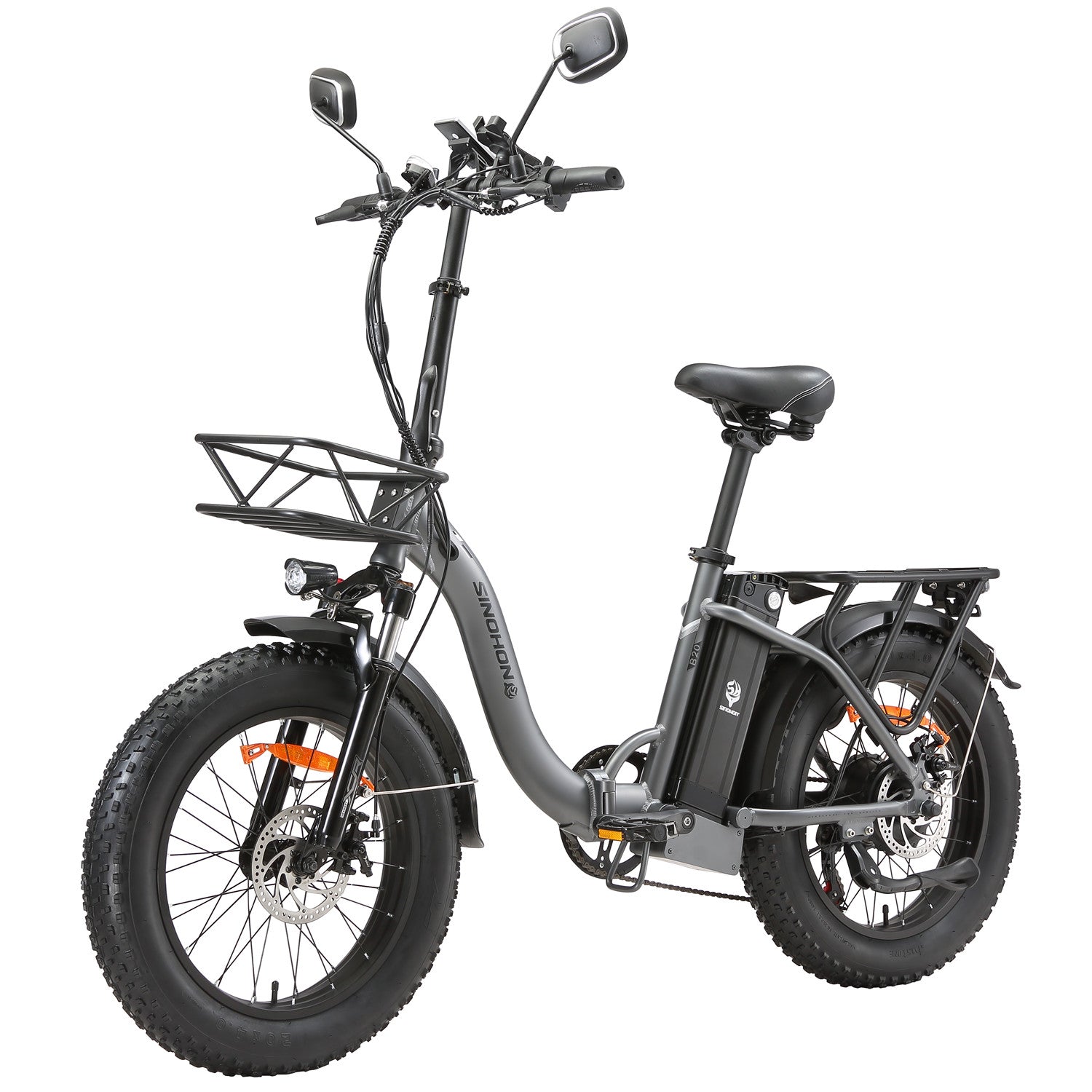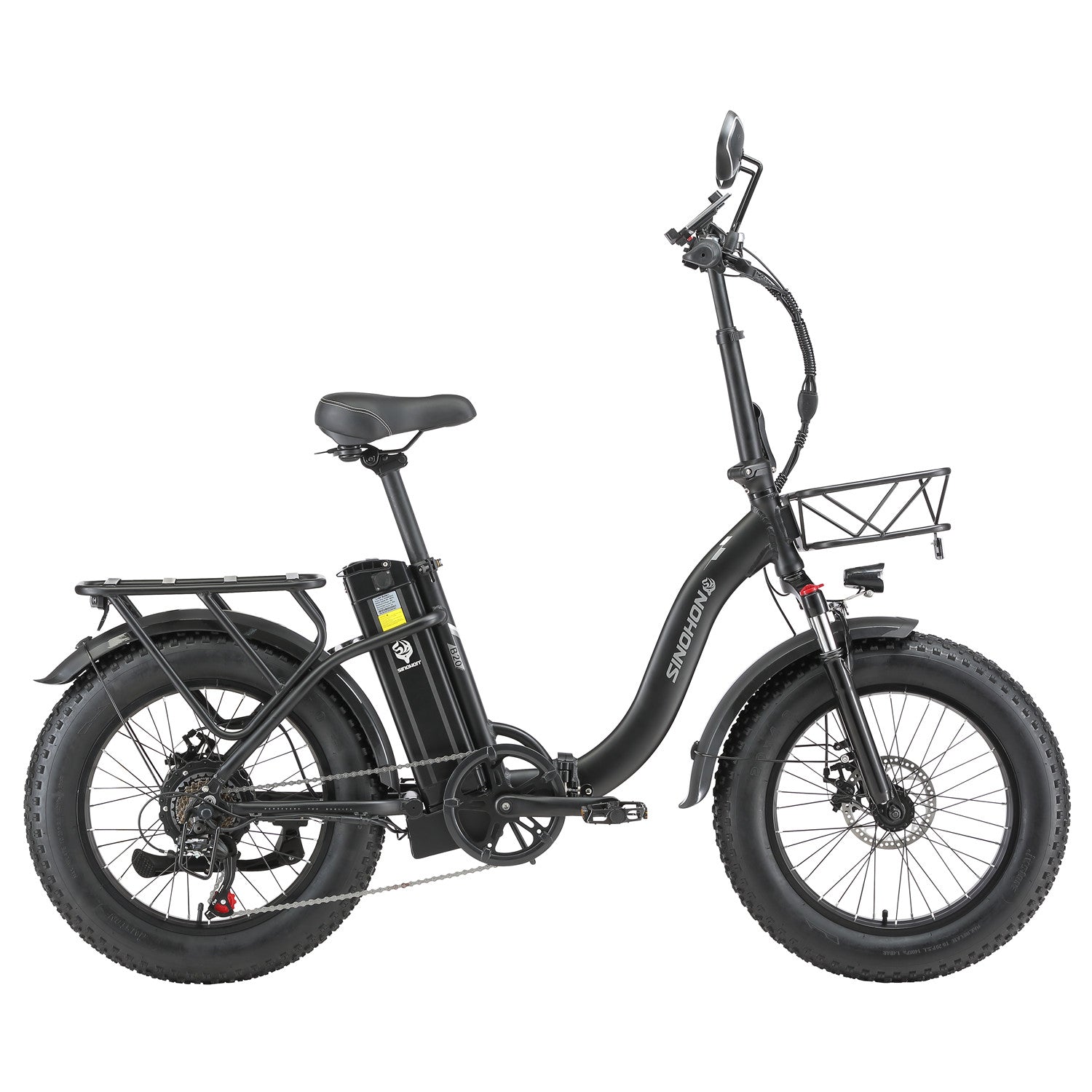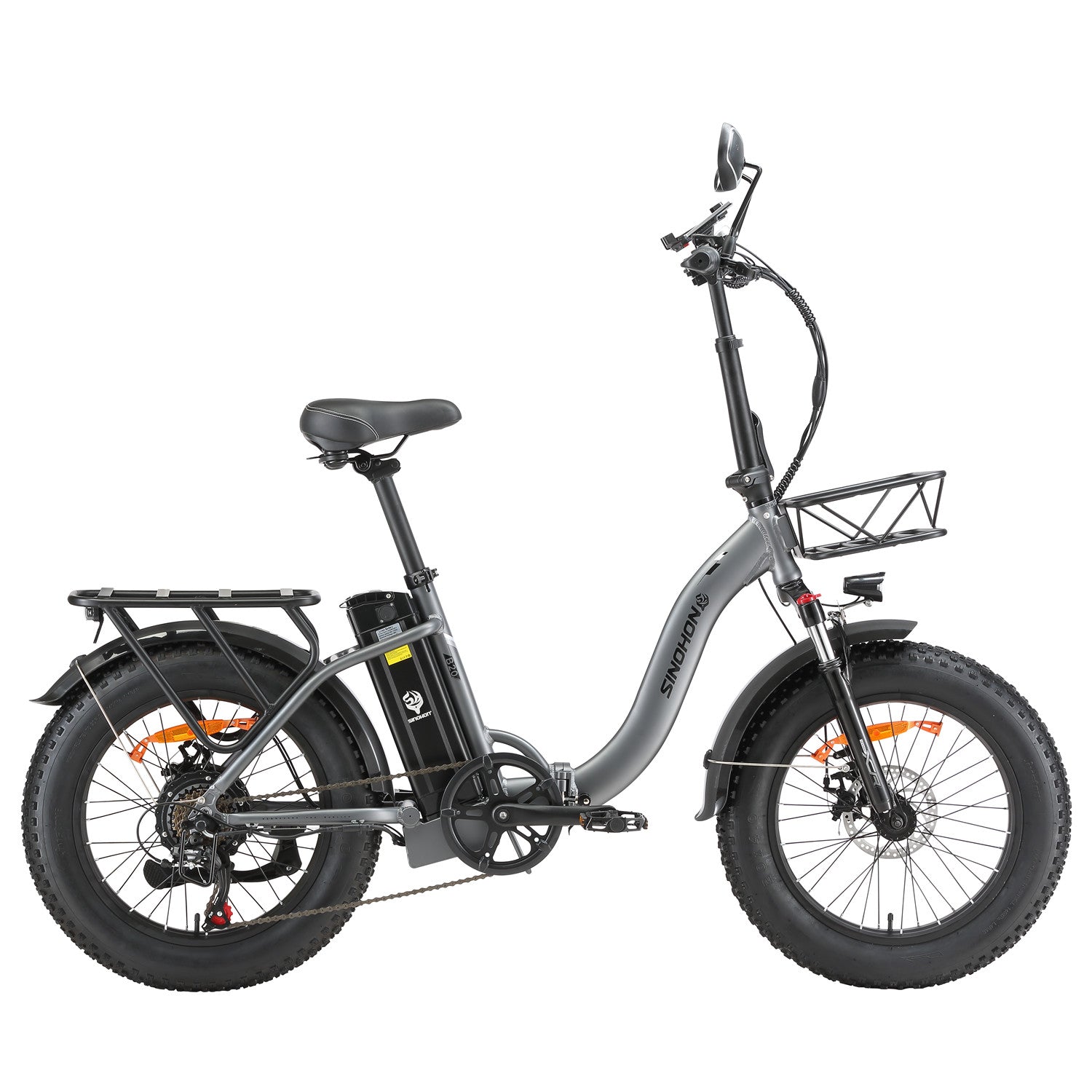 Sinohon B20 electric bike equipped with powerful peak 750W motor / 20"x4.0 fat tires / front fork suspension / shimano 7 Speed derailleur system / foldable alloy frame, providing you with a smooth and powerful riding experience.