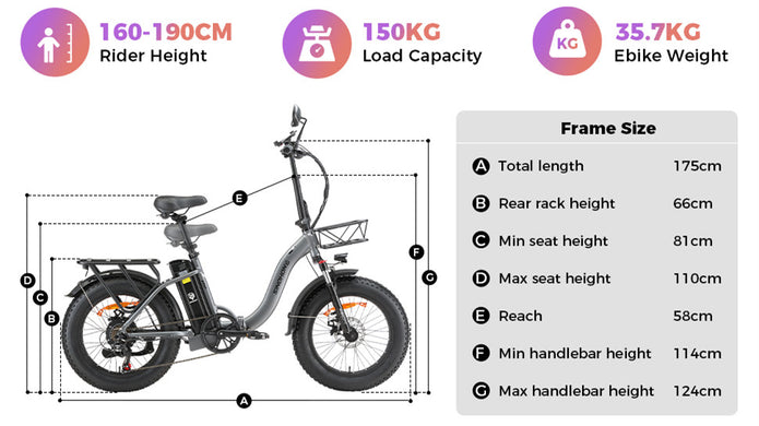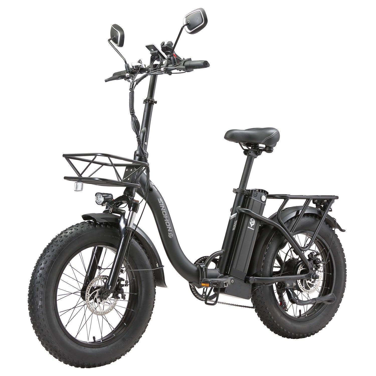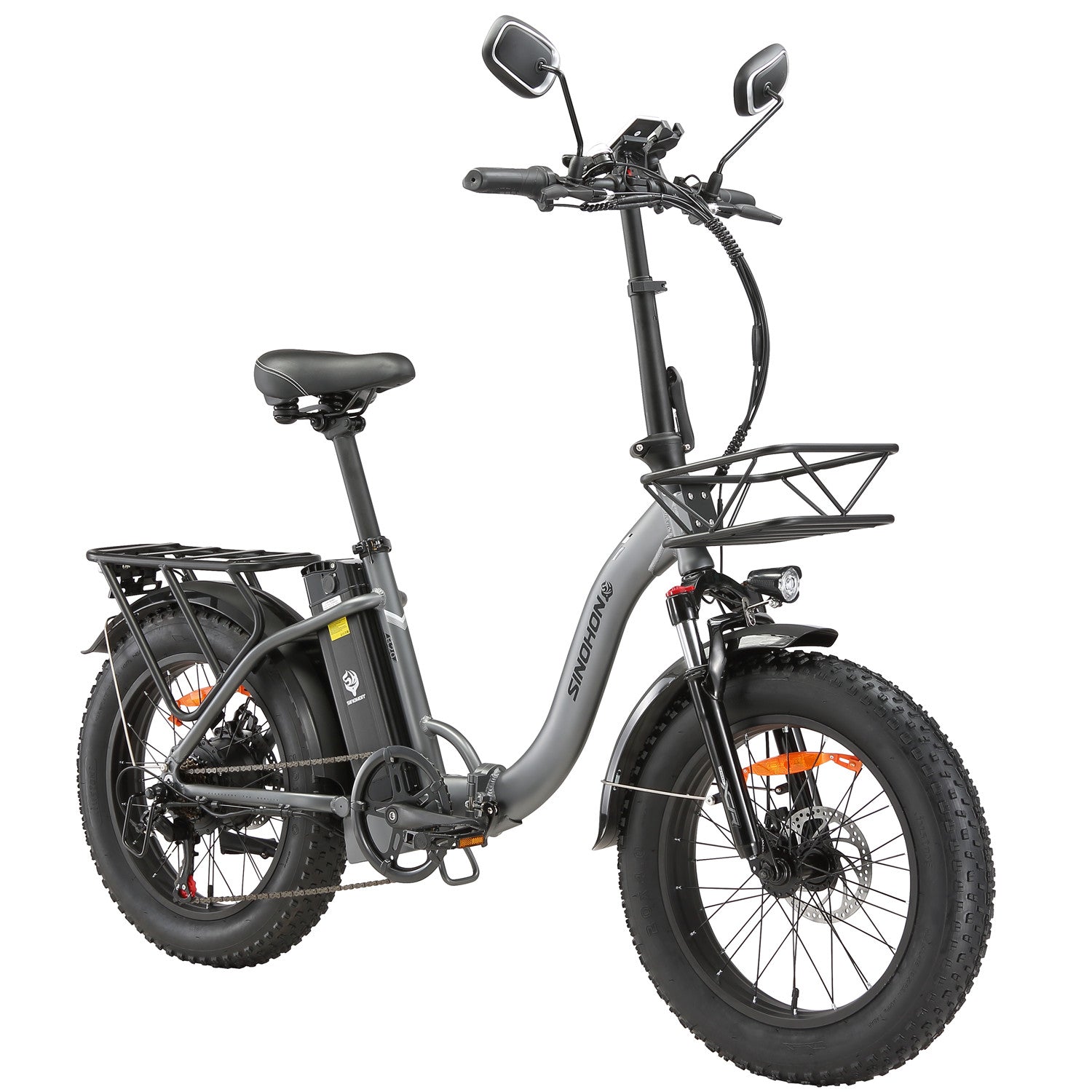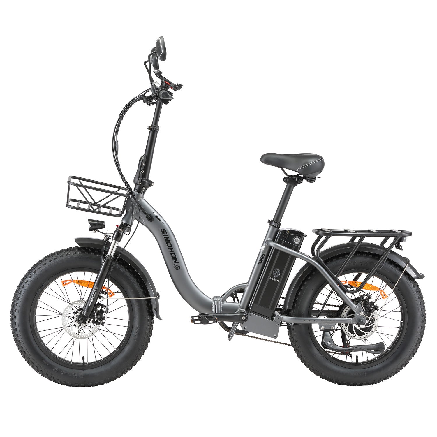 Sinohon B20 electric bike equipped with powerful peak 750W motor / 20"x4.0 fat tires / front fork suspension / shimano 7 Speed derailleur system / foldable alloy frame, providing you with a smooth and powerful riding experience.