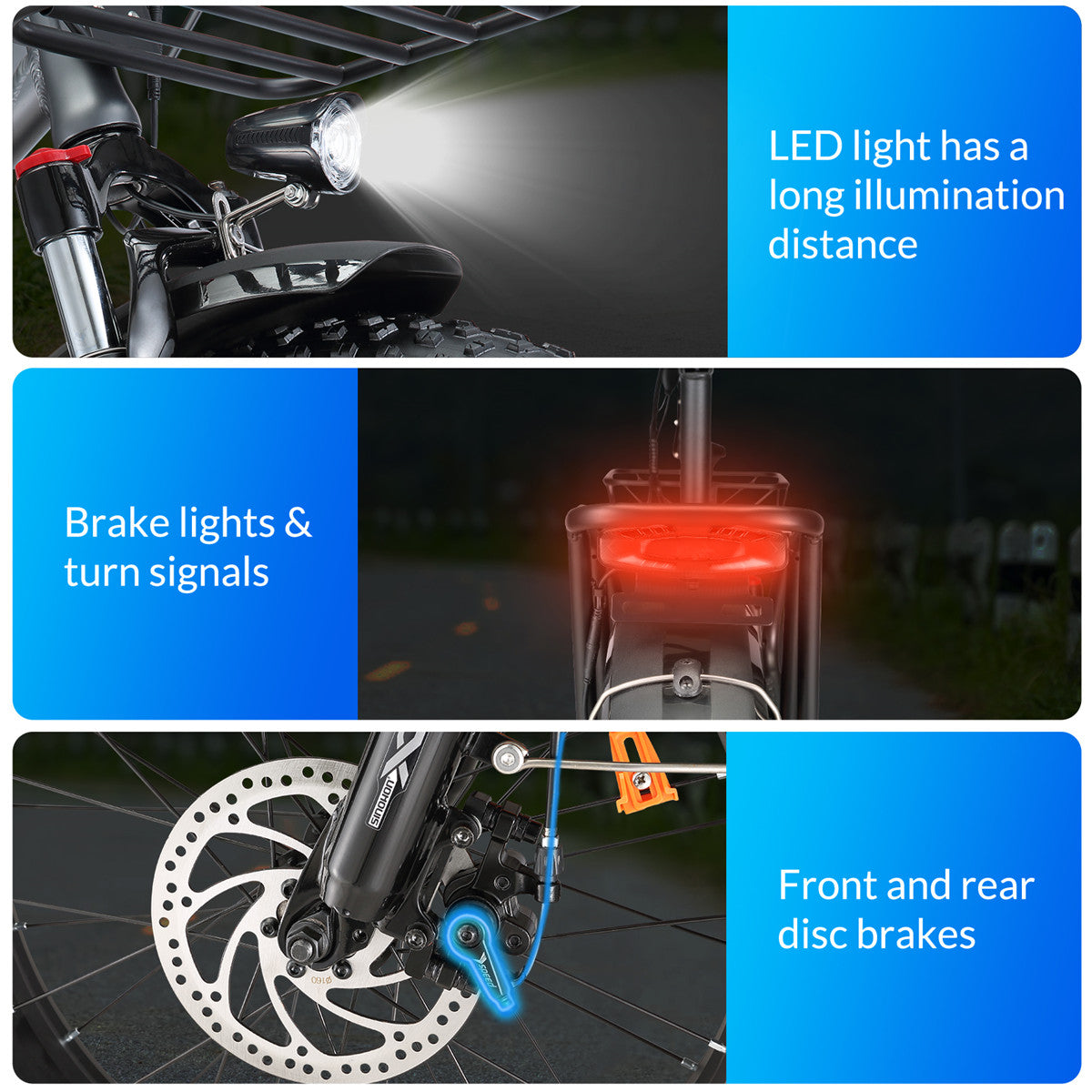 The front and rear disc brakes ensure strong and responsive braking. When you brake, the safety system will activate the rear light to alert pedestrians or vehicles behind you.
